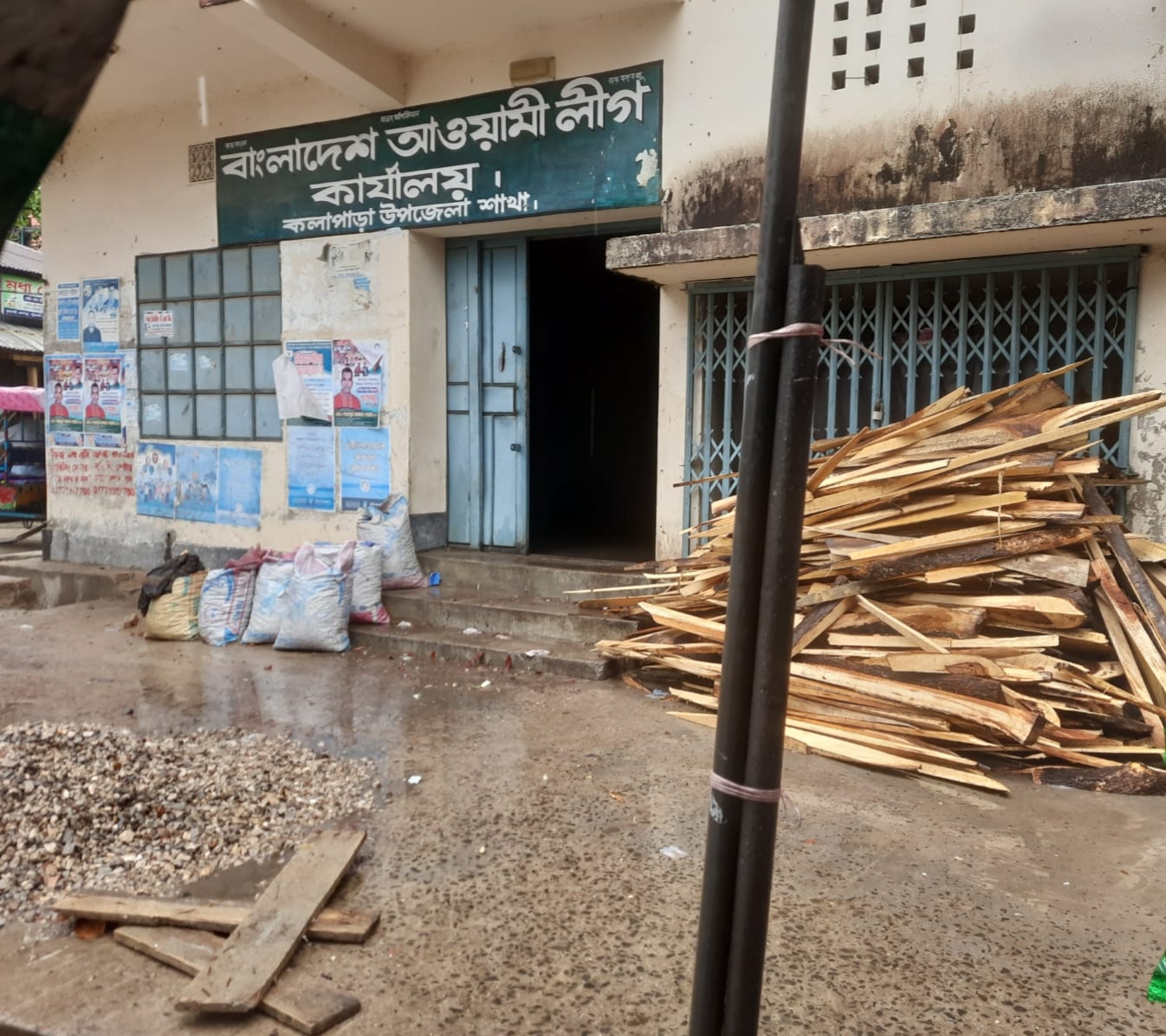 কার্যালয়ের ভেতরে এখন রাজনৈতিক পোস্টার-ব্যানারের বদলে শোভা পাচ্ছে জ্বালানি কাঠ আর গৃহস্থালির আসবাবপত্র!
